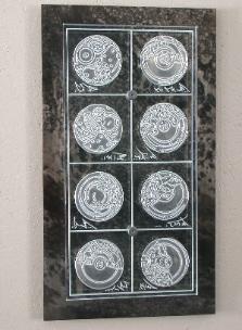 | Glass Wall Art "8 Clocks" Carved Glass 14" x 20" |
