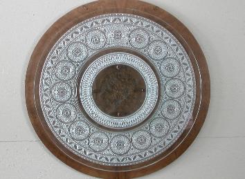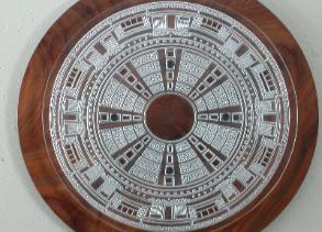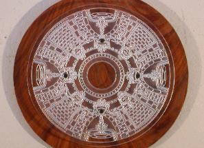 | Glass Wall Art: "Mosiaco" Burled Oak and Carved Glass 36" Dia. |