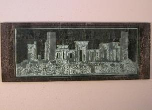 | Glass Wall Art "Palace of Darius" Carved Glass 26"x 54" |